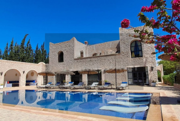 Nestled just 15 km from the heart of Essaouira and the Atlantic coast, this stunning 800 m² villa sits on a beautifully landscaped 5,000 m² plot in the peaceful area of Ida Ougourd.